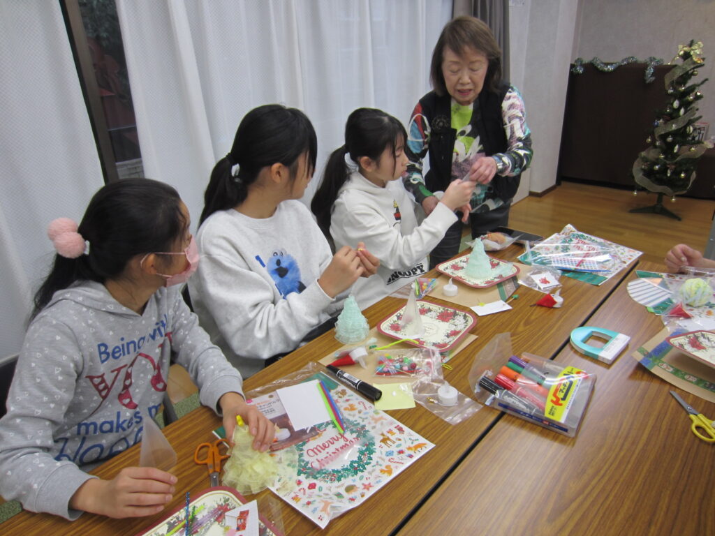 むずかしいところは手伝ってもらいながらかわいいツリーが少しずつ出来上がってきました